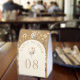 Elegant wedding table numbers featuring beautiful rustic wildflowers.