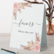 Fond blanc. Décoré de fleurs roses et dorées, de roses et d'herbe de pampa. Avec le texte : Faveurs, prenez-en un !