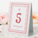 Cartes de numéro de table de fête de la Saint-Valentin cœur rose et rouge