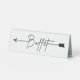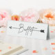 Simple et élégant signe fléché Buffet Mariage aidera vos invités mariages à trouver facilement l'endroit dont ils ont besoin. La flèche du panneau pointe vers la gauche. Le même signe avec la flèche pointant vers la droite est également disponible. Il y a d'autres signes du même design dans cette collection, y compris la réception, la cérémonie, la danse, le stationnement, les toilettes et ainsi de suite.