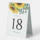 Complétez le paysage de table de votre événement avec ce panneau de tente à table fleurie. Il présente des illustrations d'aquarelle de tournesols et de feuilles d'eucalyptus. Personnalisez en ajoutant un nombre, des noms, un événement et une date. Ce numéro de table tournesol sera parfait pour l'été ou les mariages de automne, baby showers, douches nuptiales, anniversaires et bien plus encore.