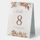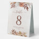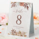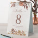 Panneau de numérotation de table mariage moderne de style bohème avec fleurs d'aquarelle et feuilles de chute dans les tons terre comme rouille brun, orange brûlé et terre cuite. Un choix parfait pour les mariages d'automne.