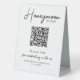 Fonds de lune de miel ! Calligraphie simple mais élégante, ce signe de fonds de lune de miel mariage présente Honeymoon dans calligraphie élégante, votre code QR personnalisé pour une application de cash ou Venmo. Customisez ce panneau de mariage élégant avec vos noms et votre date! DROIT D'AUTEUR © 2020 Judy Burrows, Black Dog Art - Tous droits réservés. Symbole simple et manuscrit QR Code Mariage Table Tente