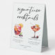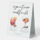 Ce panneau de tente de table à cocktails sophistiqué présente une typographie noire simple au-dessus de 2 de vos boissons préférées et de leurs ingrédients pour votre bar mariage côtier. Un dessin chic Sangria and Cherry French 75 ajoute une touche amusante à votre menu du bar. Complétez avec les noms du couple et la date de leur réception.
