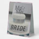 Un gros plan d'un gâteau Mariage avec M. et Mme sur le gâteau pendant une JOURNÉE SPÉCIALE. C'est sur une tente de table.