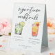 Cet après-midi rafraîchissant signature cocktails panneau de tente avec une simple typographie noire au-dessus de 2 boissons et leurs ingrédients pour votre bar mariage. Un joli dessin Gin & Tonic et Tequila Sunrise ajoutent un côté cool à votre menu de bar. Complétez avec les noms du couple et la date de leur réception.