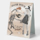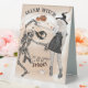 Profitez de ce joli SIGNE DE TABLE DE TÉMOIGNAGE SALEM Halloween avec une sorcière dansant avec un squelette. Le Witch est un design original fait en noir et blanc avec des tons orange pour lui donner un aspect vintage. Vous pouvez mettre à jour le texte et le "texte éffrayant" qui est une image si vous le souhaitez. Idéal pour poser sa table de bar pour Halloween, ou comme décor de fête d'anniversaire d'Halloween.