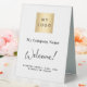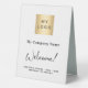 Plaque De Table Heures d'ouverture du logo commercial blanc