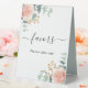 Arrière - plan blanc. Décoré de rose vif, de fleurs d'or rose, de feuilles d'eucalyptus vert aquarellés, de sprigs, de verdure, de feuilles faux or. Avec le texte : Faveurs, s'il vous plaît prenez un!