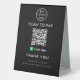 Professional Cash App QR Code Scan to Pay Logo Black Boost les options de paiement sans contact de votre entreprise avec ce professionnel Cash App QR code scan to pay logo Table Tente Sign. Élégant et élégant, ce panneau est parfait pour l'affichage à votre comptoir de caisse, table de restaurant ou partout où les clients peuvent facilement scanner et payer. Customisez le design avec votre logo d'entreprise et personnalisez-le avec un message.