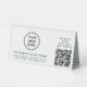 Panneau de piédestal de table moderne pour votre entreprise avec votre code QR pour les clients à scanner pour le paiement ou pour voir une liste de vos produits, services et prix ou d'autres informations. Ajoutez votre logo, votre nom commercial, votre code QR, votre numéro de téléphone et votre adresse municipale (ou toute autre information) dans une simple typographie.