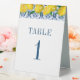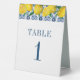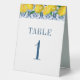 Un beau numéro de table mariage citron, avec citrons et carreaux italiens bleu et blanc. Personnalisez-le pour vos tables mariages Conçu pour vous par blackberry Boulevard.