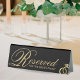Élégante tente de table réservée mariage en noir et or avec anneau en diamant brillant. Personnalisez-le avec les détails de votre événement.