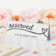 Sympa mariage noir et blanc accueil signe de table réservé avec ligne coeur. Personnalisez-le en ajoutant les détails du texte de votre événement.