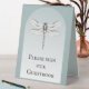 Créez un panneau simple et moderne pour votre table de livre d'or avec ce panneau de table de Mariage de libellules Turquoise. La conception de signes comporte une libellule simple et élégante avec une typographie moderne pour un message aux invités de signer votre livre d'or. Parfait pour le couple ayant un mariage à thème libellule. Autre papeterie mariage et fourniture disponible avec cette conception aussi.