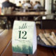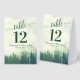 Ces panneaux de tente aideront non seulement vos invités à trouver leurs tables, mais ils rendront également votre réception de mariage plus belle. Le design est à la fois rustique et élégant, avec une scène de montagne avec une forêt de pins verdoyante entourée de brume ou de brouillard. Le titre est en calligraphie de script en dentelle avec des chiffres en gras afin que vos invités puissent facilement trouver la bonne table. Il y a de la place pour les noms du couple et la date du mariage.
