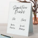 Un élégant panneau de verre signature noir & blanc parfait pour votre bar à la réception de votre mariage. Personnalisez avec votre boisson signature mariée et mariée préférée pour tous vos invités.