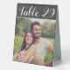 Les cartes de mariage de style rustique comportent une photo de la mariée et du marié, un arrière - plan de tableau noir et un numéro de table de script manuscrit blanc. Personnalisez chaque carte de numéro de table dont vous avez besoin et ajoutez-la individuellement à votre panier.