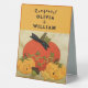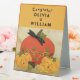 Décoration de table créative pour mariage ou enterrement de vie de jeune fille avec couple de citrouilles orange. Pour personnaliser, modifiez le texte pour ajouter les noms des mariés.