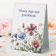 Bienvenue à vos invités avec charme et élégance grâce à cette enseigne Mariage Fleur sauvage Watercolor, un joli ajout à votre décor de table mariage. Doté de fleurs sauvages d'aquarelle douce et d'un délicat mélange d'accents floraux printaniers et boho, ce signe s'ajoute parfaitement à un thème mariage fleuri romantique. Le message, "Signez notre livre d'or," est affiché dans une typographie moderne gracieuse avec un agencement simple, créant un bel équilibre entre fonction et style. Le design féminin et les fleurs bohèmes fantaisistes apportent une touche légère et aérée à votre célébration.