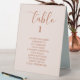 Le design présente des fleurs délicates minimalistes modernes et un arrière - plan en terre cuite clair. Si vous souhaitez commander plus, personnalisez et commandez chaque signe avec le numéro de table et la liste des invités sur le devant. Le côté arrière comprend un motif d'en-tête de votre monogramme de mariage personnalisé ainsi que la date et le lieu de l'événement, encadré par des illustrations délicates (amovibles). Vous pouvez choisir de le personnaliser avec vos propres détails ou de le supprimer.