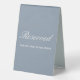 Plaque De Table Mariage moderne Dusty bleu & blanc Script Réservé