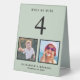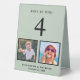 Amusez-vous avec les panneaux de numéro de table de réception de votre mariage avec ces tentes de table verte sage avec des photos d'enfance des jeunes mariés. Chaque numéro de tableau correspond aux photos de la mariée et du marié à cet âge. Par exemple, pour le tableau 4, ajoutez des photos de la mariée et du marié à l'âge de 4 ans. Si vous avez un grand nombre de tables, vous pouvez les diviser en deux et avoir la première moitié avec une couleur arrière - plan ou texte et la deuxième moitié avec une couleur arrière - plan ou texte différente. Par exemple, si vous avez 30 tables, vous pouvez avoir un numéro de table blanc 1 -15 et un numéro de table noir 1-15 (et indiquer la couleur appropriée du numéro de table sur les cartes de place).