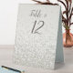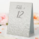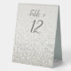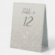 Élégant panneau de numéro de table mariage style tente fait dans une couleur d'ivoire sablonneuse avec fausse parties scintillant. Personnalisez le texte de chaque table à votre réception.