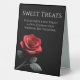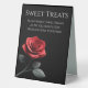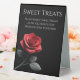Améliorez votre décoration de réception de mariage avec cette Tabletop Sweet Traitements moderne et élégant Connectez-vous en noir avec une belle Rose simple rouge. Ce panneau magnifiquement conçu se marie harmonieusement avec votre thème, ajoutant une touche d'élégance à votre table. Explorez la Collection pour un mariage à thème moderne.