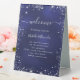 Un arrière - plan bleu marine, décoré de parties scintillant faux argentées brille. La couleur bleue est inégale. Personnalisez et ajoutez vos noms et le programme de mariage.