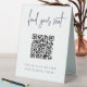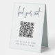 Faites en sorte qu'il soit facile à votre mariage ou à vos invités d'événements de trouver leur siège avec ce panneau de table de code QR. "Trouvez votre siège" apparaît en haut, avec de brèves instructions en dessous. Entrez l'URL de vos assignations de sièges et le code QR sera mis à jour. Vous pourrez scanner le code pour trouver facilement votre emplacement.