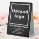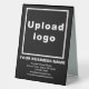 Signe de table que vous pouvez customiser pour mettre votre nom d'entreprise et d'autres informations de votre entreprise. Vous pouvez l'afficher sur votre bureau en tant que matériel de marketing pour annoncer votre entreprise ou pour promouvoir votre marque auprès de clients ou de clients. Signalisation personnalisable que vous pouvez utiliser pour sensibiliser la marque. Les couleurs design sont des textes blancs sur arrière - plan noir. Pour customiser ce panneau de tableau, téléchargez votre logo d'entreprise, tapez votre nom d'entreprise, votre adresse, votre numéro de téléphone, votre adresse e-mail et votre site Web ou votre page de médias sociaux. Veuillez vérifier l'apparence après avoir téléchargé le logo et tapé des textes. Si l'apparence vous plaît, vous pouvez passer votre commande maintenant. Si vous avez besoin de redimensionner et déplacer le logo et les textes pour s'adapter à ce panneau de table, s'il vous plaît changer dans l'outil de conception. Vous pouvez également effectuer d'autres modifications en fonction de l'apparence de ce panneau de tableau que vous préférez dans l'outil de conception, comme changer la couleur arrière - plan, la couleur de police et le style de police.