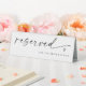 This modern reserved sign features the word “reserved” in elegant handwritten script with a simple heart accent for a refined, romantic touch. Designed to coordinate with black and white wedding table cards, this self-standing tent sign can be personalized with text such as “for the bride’s family” or any custom message. A beautiful way to style your reception seating with modern minimalist typography and elegant simplicity.