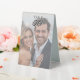 Celebrate your special day with this beautifully refined velum overlay, photo wedding table number, featuring a romantic portrait of a Caucasian couple as the centerpiece of the design. The top and bottom third of the layout showcases elegant black calligraphy text enhanced with a soft white drop shadow, ensuring high contrast and beautiful readability against the photograph.