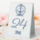 La carte de numéro de table bleu et blanc marine à thème nautique comporte un monogramme d'ancre de bateau et des détails de corde. Personnalisez et ajoutez chaque carte de numéro de table à votre panier.