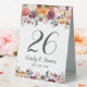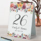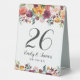 Les cartes de numéro de table de mariage de style romantique rustique présentent un monogramme élégant avec des chiffres encadrés par une aquarelle fleurie avec de beaux roses, dahlias, des fleurs de pivoines et de la verdure, dans une magnifique palette automnale de rouge bordeaux, jaune doré, orange pêche, rose roux et tons verts. Couleur arrière - plan blanche.