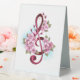 Pink treble clef with delicate, detailed pink Japanese cherry blossoms against white background painted over with light blue paint Blooming pink sakura.