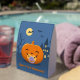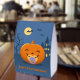 Adorable baby Halloween pumpkin with a pacifier. A dead tree, a creepy mansion, some bats, and the moon are seen on the background.