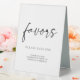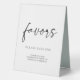 Minuscule Noir Blanc Moderne Mariage Classique Favoriser Table Tente Signal. Le texte 'favors' n'est pas modifiable. Peut être utilisé pour les mariages, douches nuptiales, baby showers, etc.