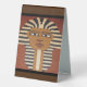 L'image imprimée sur la tente de table est d'une photo d'une tapisserie originale crochet mur suspendu conçu à la main et Copyright © par le designer publié Delores Chamblin. L'image de la création artisanale unique avec l'ancien pharaon égyptien Tut dans les tons bruns de terre naturelle est reproduite sur la tente autonome.