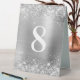 Note : Cette option n'est pas créée en tant que jeu. Ajoutez chaque numéro dont vous avez besoin à votre commande customisée individuellement. Créez votre propre modèle de texte de numéro de table de mariage vertical 6" X 8" à l'arrière et à l'avant du panneau de tente de table. L'arrière - plan de l'art numérique présente une parties scintillant en faux argent ceinturé sur les bords latéraux sur une feuille en métal brossé gris argenté. Le style et la taille élégants de police de calligraphie peuvent être changés au besoin.