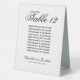 Ces panneaux de tentes de numéro de table mariage sont simples et élégants. Ils disposent d'un script sophistiqué avec le numéro de table avec de l'espace pour 10 noms, ce qui permet à vos invités de trouver facilement leurs tables. Le texte est noir sur un arrière - plan blanc. Il y a de l'espace pour les noms du couple et la date du mariage.