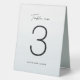 Conçu pour coordonner avec la collection Lea Delaveris Design "Big Day Getaway", ce numéro de table recto-verso est doté d'un arrière - plan d'aquarelle bleu marine clair ainsi que d'un numéro et d'un nom personnalisables et d'un "tableau no" dans un script de coordination. Idéal pour un mariage de plage tropicale.