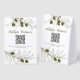 Customizable this Olive Branch Line Drawing Design Tent Card. Elevate your event decor with our fully customizable QR code Wedding Program, featuring an elegant olive branches line drawing. You can seamlessly change the color of the text and reposition the clipart to suit your unique style!