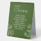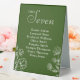 Arrière - plan vert olive simple design floral signe de table mariage.