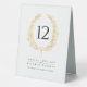 Élégante feuille de couronne ovale en effet doré sur blanc avec le numéro de table du mariage de texte noir. Modifiez cette carte avec vos propres noms, les détails du mariage et le numéro de table. Vous devez changer le numéro de chaque numéro de table dont vous avez besoin et les ajouter à votre panier, un par un. Des rabais sur la quantité peuvent s'appliquer une fois que vous avez ajouté tous les articles à votre panier. D'autres articles correspondants sont disponibles. Conçu par www.mylittleedenweddings.com