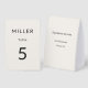 Ce panneau de numéro de table de mariage architectural présente un titre de nom de famille gras et une mise en page minimaliste structurée, conçu comme une pièce de réception modulaire à double usage.