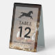 Le panneau de numéro de table Derby, de style tente, comporte un décodeur de cristal bourbon rempli de whisky et des verres sur une table en bois rustique et une silhouette hippocampe (vous pouvez enlever le cheval) et bien sûr, vos détails en lettres chic. CORRESPONDRE des articles dans notre magasin.