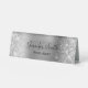 Créez votre propre plaque de nom de bureau personnalisée avec la place pour le nom et le titre de l'emploi à la fois à l'arrière et à l'avant du panneau de tente de table. Le design présente une parties scintillant en argent brillant et faux girly sur les bords latéraux sur un arrière - plan en feuille de dégradé gris argenté foncé et faux art numérique. La couleur principale de la parties scintillant décorative effets numériques, ombre graphique et élégante calligraphie sont gris, argent, noir et blanc. Le style et la taille de la police peuvent être modifiés si nécessaire. Supprimez d'un côté si vous préférez.