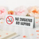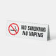 Panneau de la tente supérieure non fumeur avec un croisé sur la cigarette et le texte "Non fumeur" et "Pas de vapeurs" ci-dessous.
